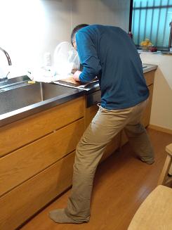 長身の社長にはシンクが低っ(-_-;) |