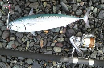 昨日、朝早くから柏原海岸で「ワカシ」を調子よくゲットした社長。